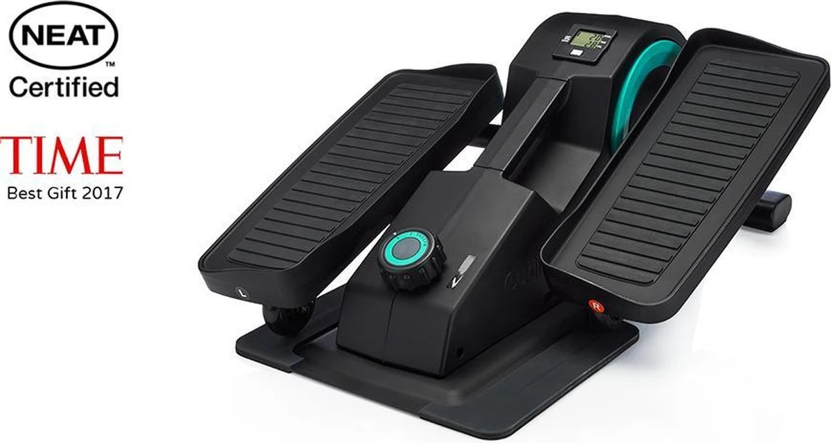 De Cubii is een elliptische trainer waardoor je knieën zelfs lager blijven dan bij een compacte fietstrainer. Hierdoor is de Cubii bijzonder geschikt om onder een standaard bureau te worden gebruikt.